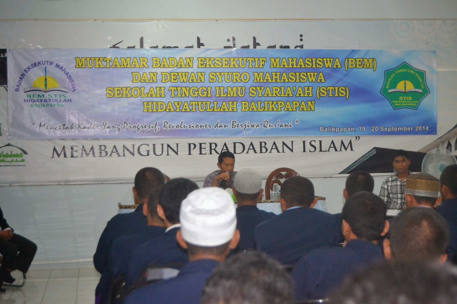 Stishid.ac.id– Mahasiswa Sekolah Tinggi Ilmu Syari’ah (STIS) Hidayatullah menggelar Muktamar Mahasiswa di Gedung WKP Yayasan Pondok Pesantren Hidayatullah, Balikpapan, Kalimantan Timur. Dengan mengususng tema “Progresif, Revolusioner dan Berjiwa Qur’ani”, kegiatan yang berlangsung selama 3 hari dari tanggal 19 hingga 21 September itu dibuka oleh Ketua STIS Hidayatullah Balikpapan Abdul Ghofar Hadi, M.S.I, Jum’at (19/9) pagi. Di sesi pembukaan, Anggota Majelis Syuro Hidayatullah, Nashirul Haq, Lc, MA diundang untuk memberikan ceramah kepada peserta muktamar.